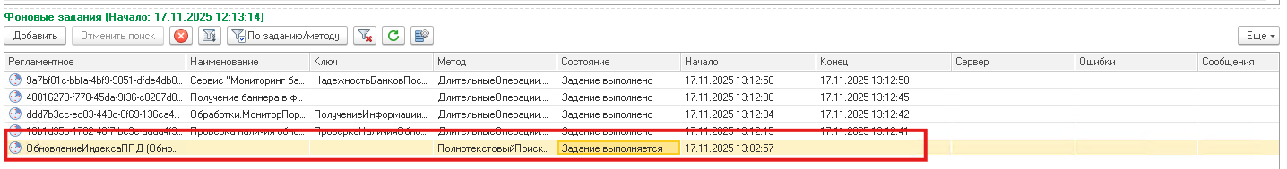 Ищем пункт, который запустился в момент начала утечки памяти. В моём случае это «ОбновлениеИндексаППД».